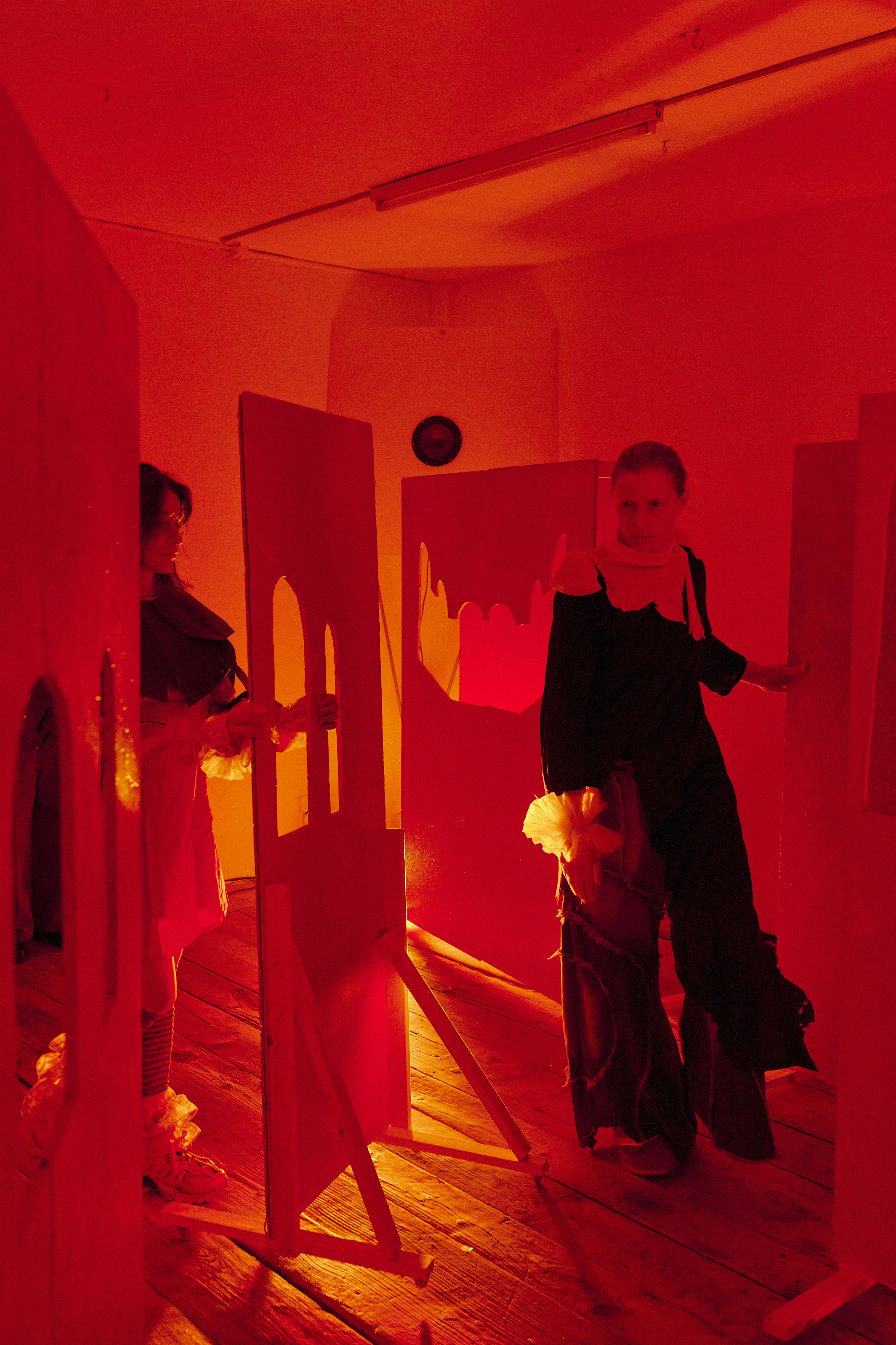 Dear ghoster, time forks perpetually toward different futures, in one of them I am your enemy. Sincerely, your stalker is a setting that is constructed and reconstructed during the concerts with everyone present. The exhibition is a complete installation.
