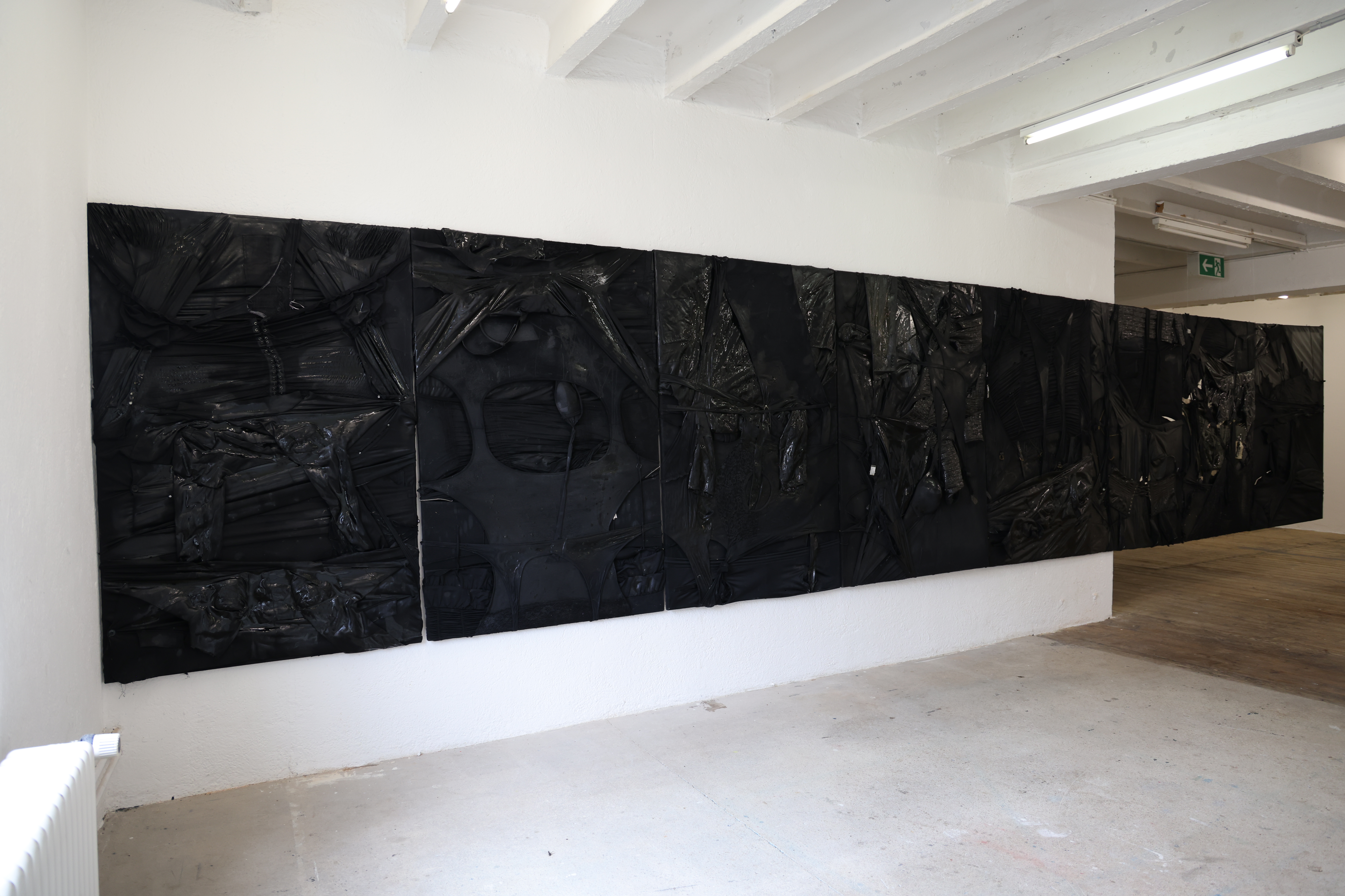 The works exhibited also delve into the idea of the abject, a concept that has long been associated with painting. Coined by post-structuralist Julia Kristeva, the abject describes the liminal space between subject and object, self and other. Abject is what creates strong emotions, it is repulsive, raw, unpolished, direct, abjection is the radical rejection of parts of the self that are now not (any longer) tolerable. In the context of painting, it is often associated with abstract expressionism and the gesture of the artist's hand, which leaves traces of the body on the canvas. In this exhibition, the sculpture-paintings become abject in the sense that they embody the traces of the dancers' bodies and invite tactile interaction. Contact improvisation, where spontaneous, collaborative movement exploration and physical contact are paramount and which is the guiding principle of YBDG’s performances, resonates with the notion of the abject. Through touch, the dancers establish a direct connection, communicating through bodily responses and reactions, forming a physical dialogue that transcends language. Movement becomes a language in itself, a means of expression and connection that goes beyond individuality and in turn becomes social. Within this framework, the abject takes on a multifaceted interpretation, encompassing the traces of the body and the transformative power of touch, the exchange between dancers and the marks this left. The sculptures, as embodiments of these exchanges, become conduits for exploring the liminal spaces between movement and stillness, the self and the other, and somatic memory and experiences.