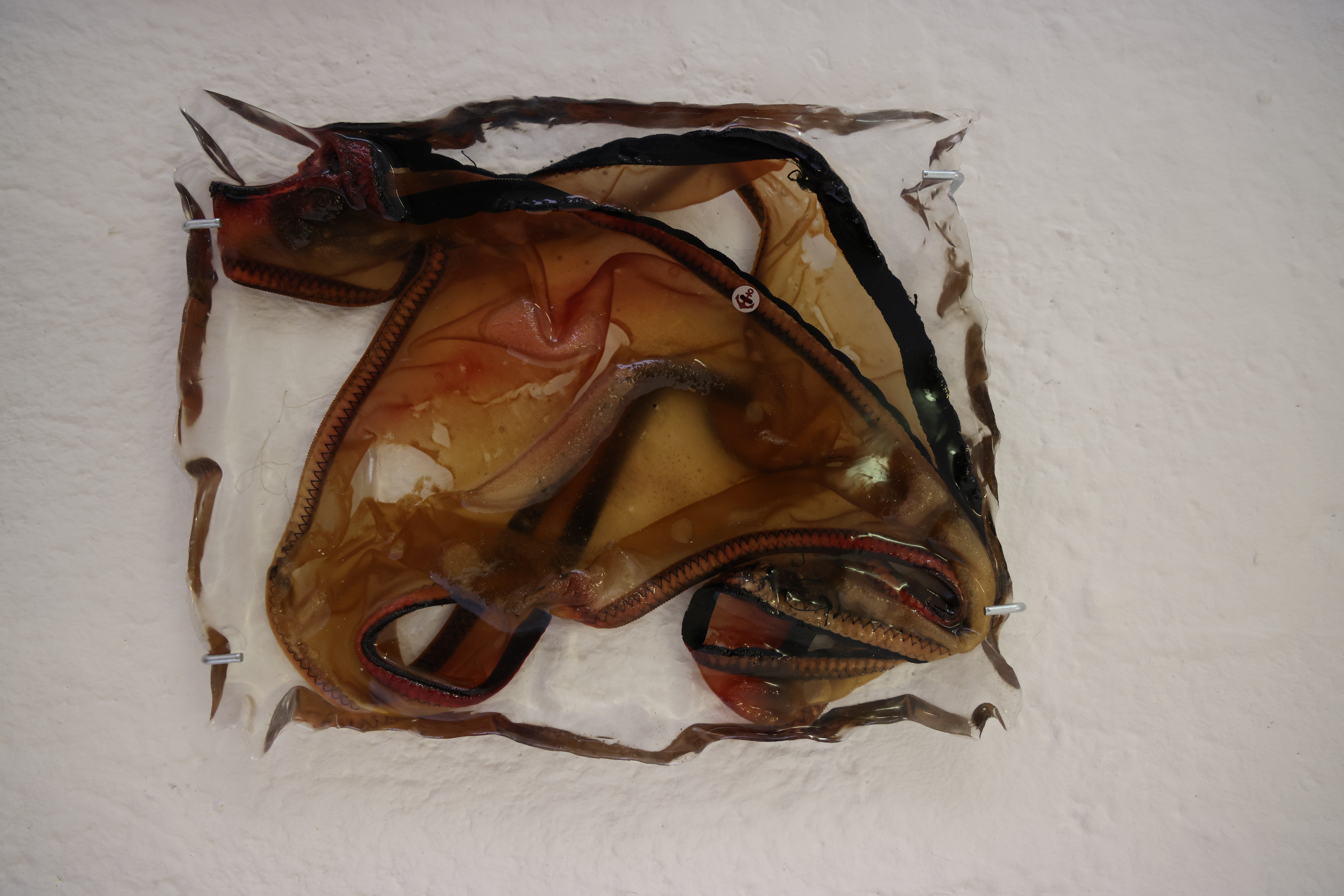 Die Arbeiten verweisen auch auf das Abjekte, ein Konzept, das seit langem mit der Malerei in Verbindung gebracht wird. Der von der Poststrukturalistin Julia Kristeva geprägte Begriff beschreibt den Grenzraum zwischen Subjekt und Objekt, Selbst und Anderem. Abjekt ist, was starke Emotionen erzeugt, es ist abstoßend, roh, ungeschliffen, direkt, das, was Ablehnung erzeugt und nicht (länger) als Teil des Selbst tolerierbar ist. Im Zusammenhang mit der Malerei wird das Abjekte oft mit dem abstrakten Expressionismus und der Handbewegung in Verbindung gebracht, die Abdrücke des Körpers auf der Leinwand hinterlässt. In dieser Ausstellung werden die Werke in dem Sinne abjekt, dass sie die Spuren der Tänzer:innen verkörpern und selber zur Berührung einladen. Auch Contact Improvisation, bei der die spontane, kollaborative Bewegungserforschung und der Körperkontakt im Vordergrund stehen und die das Leitprinzip der YBDG-Performances darstellt, steht in Bezug zum Begriff des Abjekten. Durch Berührung stellen die Performer:innen eine direkte Verbindung her und kommunizieren durch körperliche Reaktionen, so dass ein physischer Dialog entsteht. Die Bewegung wird zu einer eigenständigen Sprache, zu einem Mittel des Ausdrucks und der Verbindung, das über die Individualität hinausweist und so zu einem sozialen Element wird. In diesem Rahmen erhält das Abjekt eine vielschichtige Auslegung, die die Spuren des Körpers und die transformative Kraft der Berührung und des Austauschs zwischen Tänzer:innen einschließt, sowie dessen sichtbare Überbleibsel. Als Verkörperungen dieses Austauschs werden die Skulpturen zu Instrumenten für das Erforschen dieses Grenzraums zwischen Menschlich und Unbelebt, Bewegung und Starre sowie somatischer Erinnerungen und Erfahrungen.